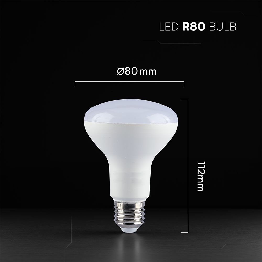 📐 Σχήμα λάμπας: R80 με ευρεία γωνία δέσμης 120° για ομοιόμορφη κατανομή φωτός.