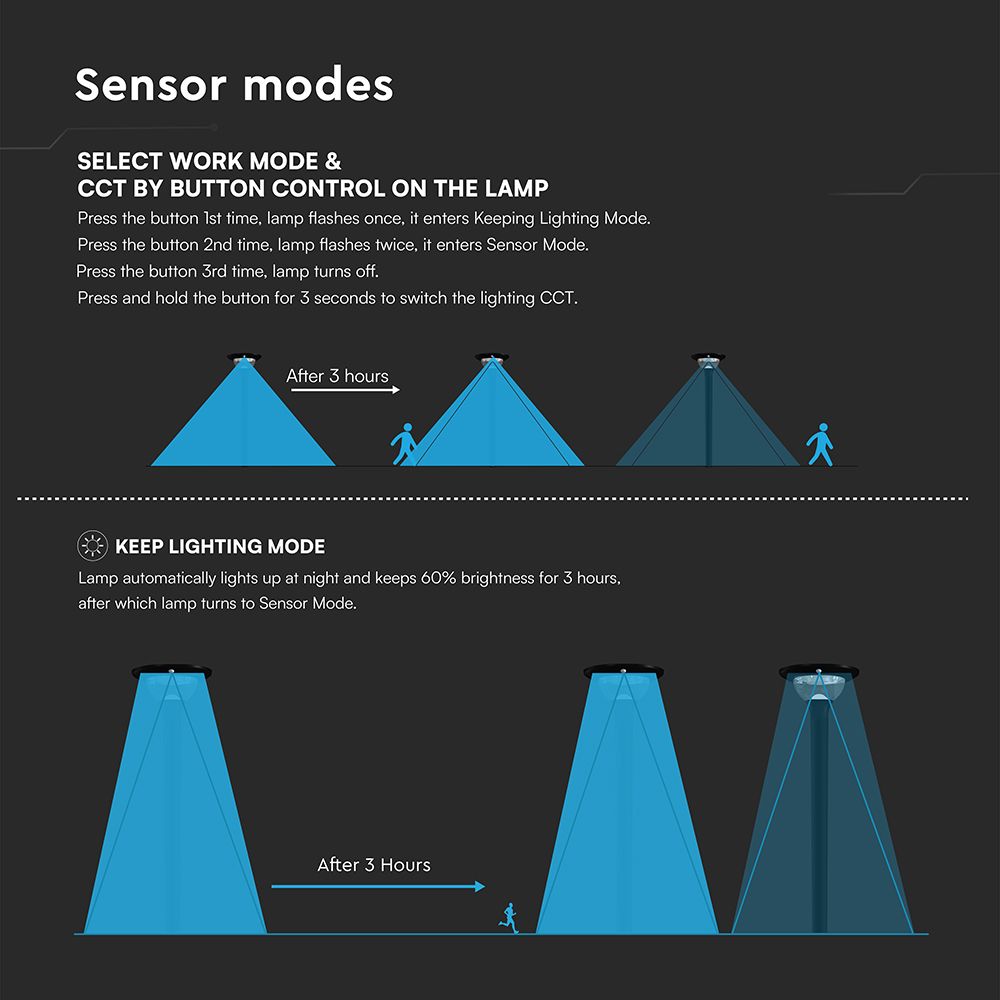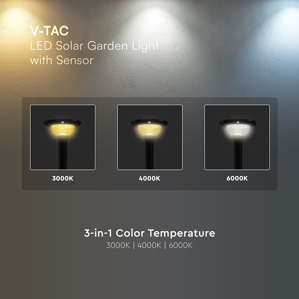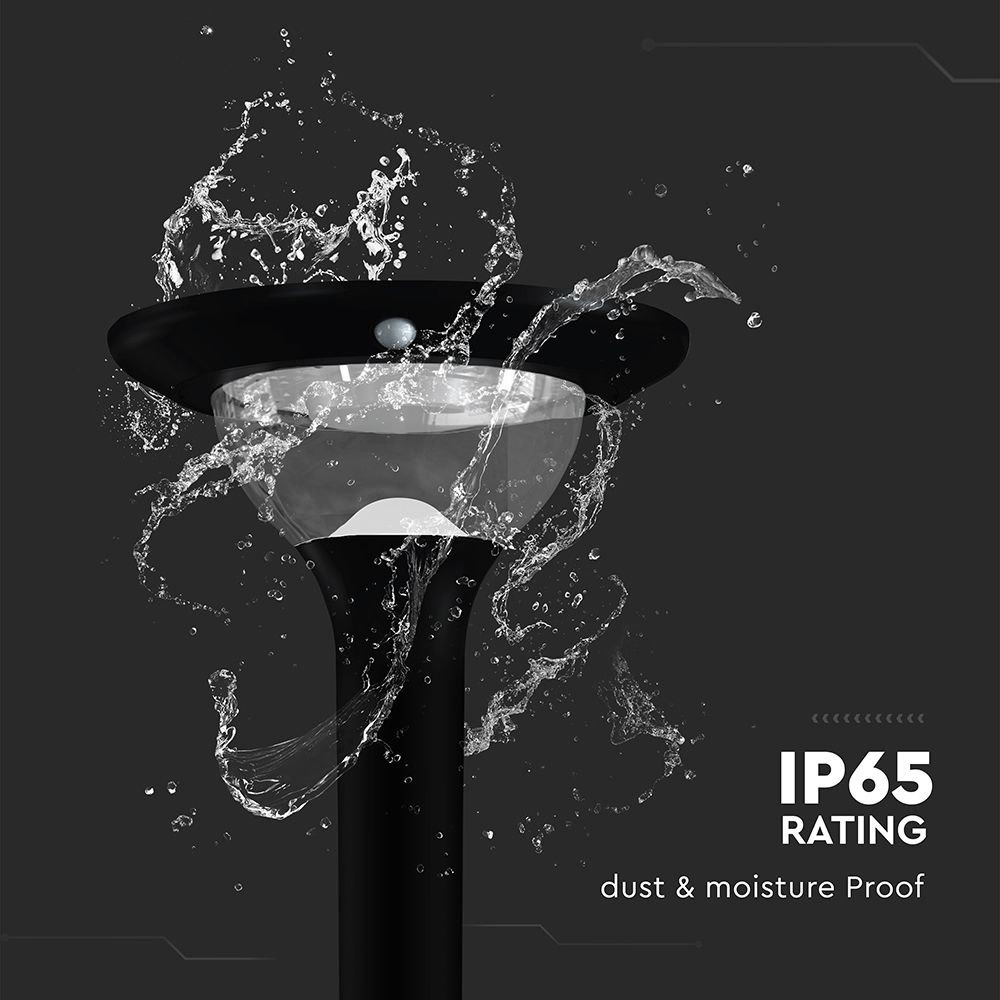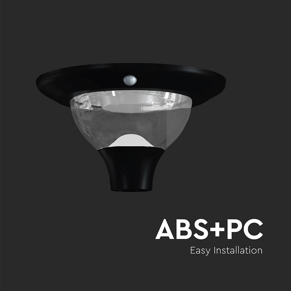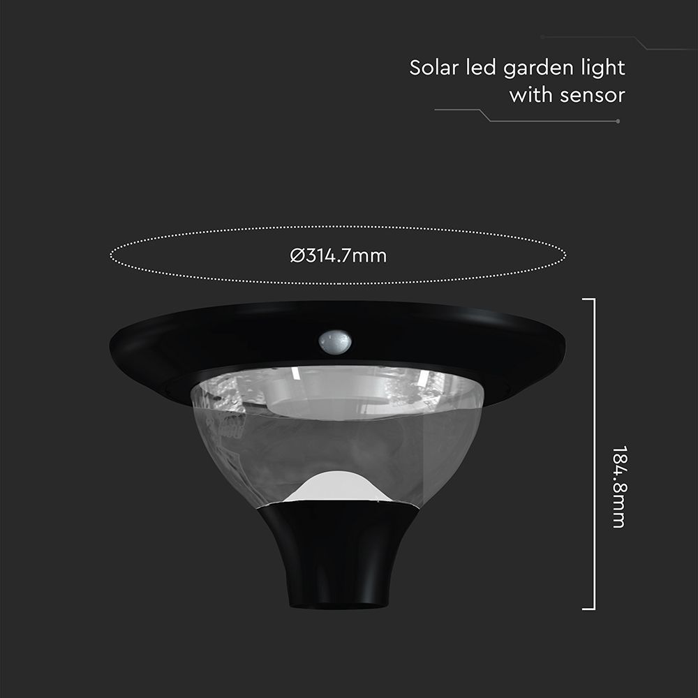 15W LED Ηλιακό Φωτιστικό Κορυφής για Κολωνάκι Φ60 Κήπου CCT Μαύρο IP65 με Ανιχνευτή Κίνησης V-TAC – 24098