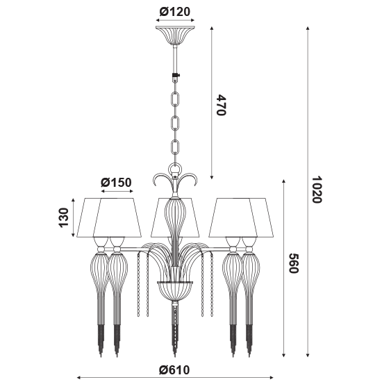 ACA DECOR – Κρεμαστό Φωτιστικό 5ΧΕ14 Μεταλλικό. Μαύρο+Αμπαζούρ + Γυαλί + Αλυσίδα Chrome Φ61ΧΗ102cm