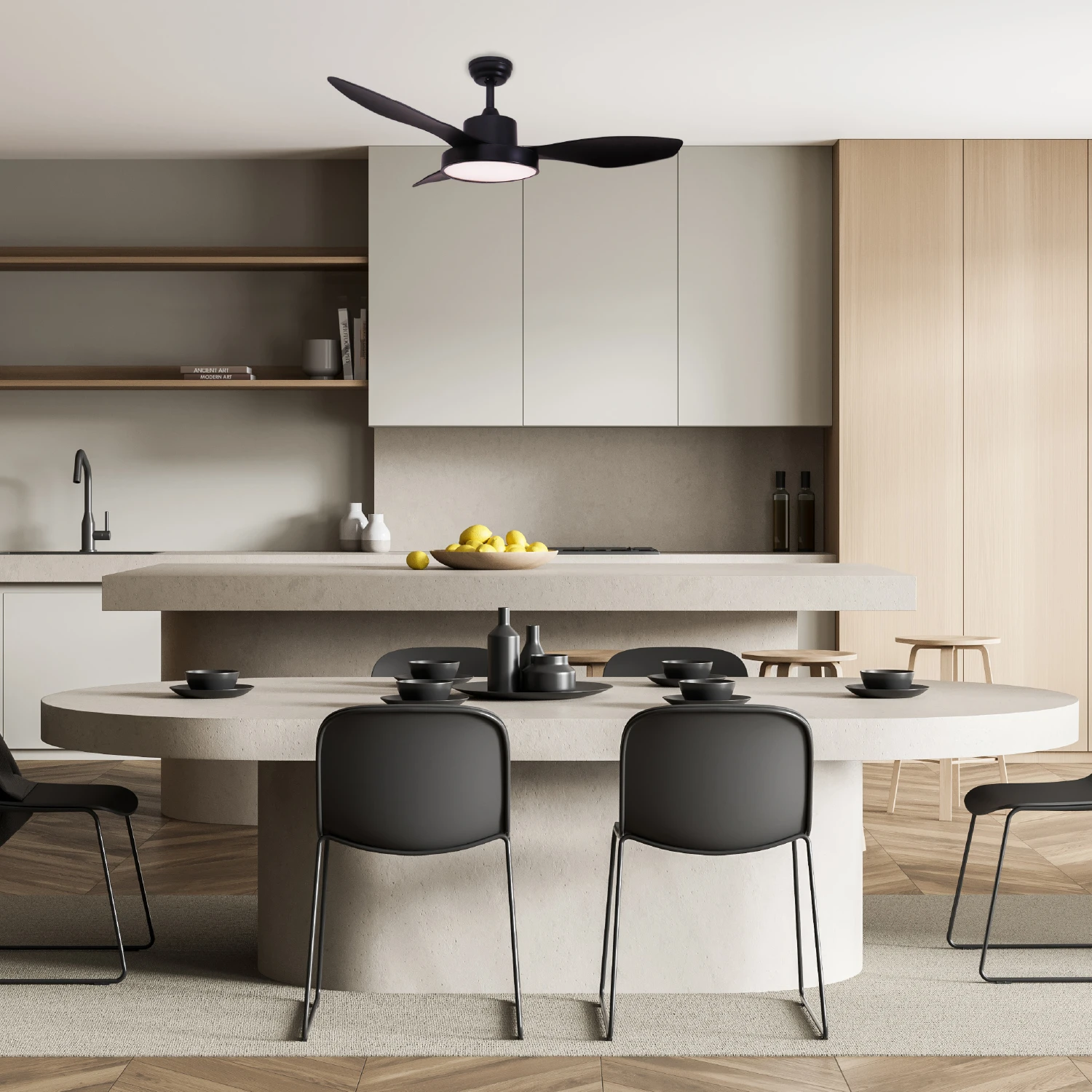 Ο ανεμιστήρας οροφής αποτελεί την ιδανική επιλογή για σύγχρονους χώρους που απαιτούν υψηλή αισθητική και άριστη απόδοση. Με διάμετρο 47” (120cm) και 3 πτερύγια ABS σε κομψό μαύρο ματ, προσφέρει δυναμική ροή αέρα και μοντέρνο χαρακτήρα που ταιριάζει σε σαλόνια, lofts, υπνοδωμάτια και επαγγελματικούς χώρους.
