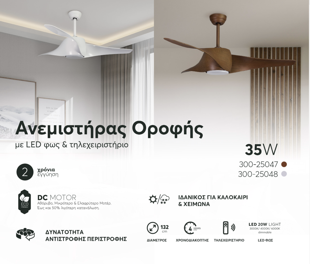 ΑΝΕΜΙΣΤΗΡΑΣ ΟΡΟΦΗΣ ΧΡΩΜΑ ΛΕΥΚΟ ΜΕ LED ΦΩΣ ΚΑΙ ΚΟΝΤΡΟΛ Φ132 DC ΜΟΤΕΡ 35W EUROLAMP – 300-25048