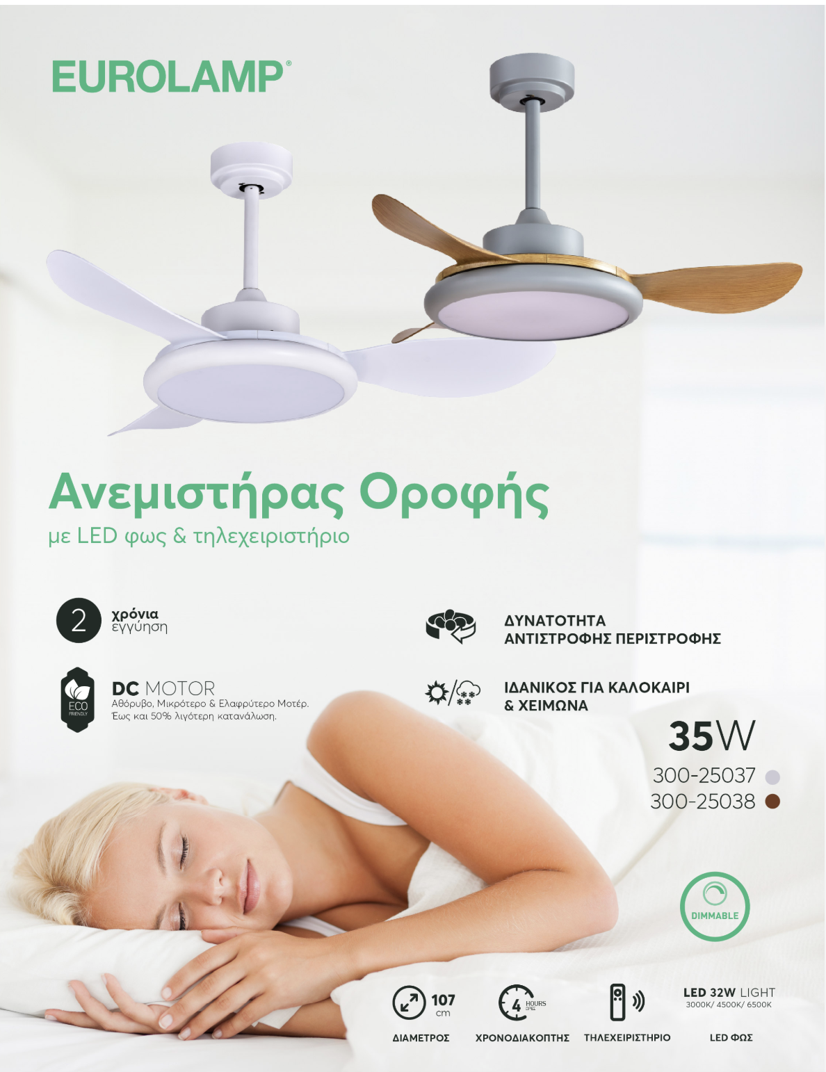 ΑΝΕΜΙΣΤΗΡΑΣ ΟΡΟΦΗΣ ΓΚΡΙ ΚΑΙ ΞΥΛΟ ΜΕ LED ΦΩΣ ΚΑΙ ΚΟΝΤΡΟΛ Φ107 DC 35W EUROLAMP – 300-25038