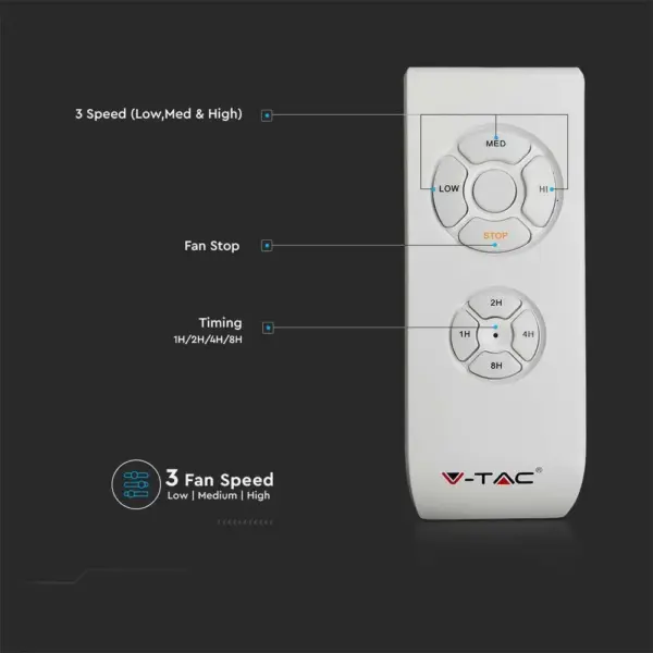 Ανεμιστήρας οροφής LED 65W μαύρο σώμα 3 πτερυγίων με ρύθμιση μέσω RF control V-TAC – 2868