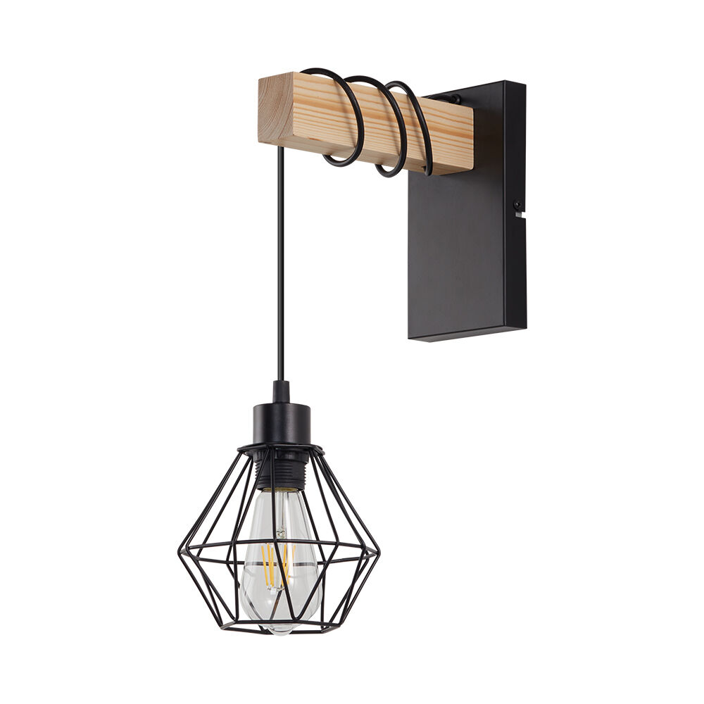 Απλίκα 1 x Ε27 μαύρη/ξύλο – BV02-00024