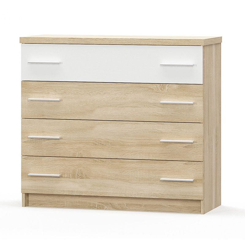 Συρταριέρα Geneva pakoworld 4ων συρταριών φυσικό-λευκό 103x40x92εκ – 173-000016