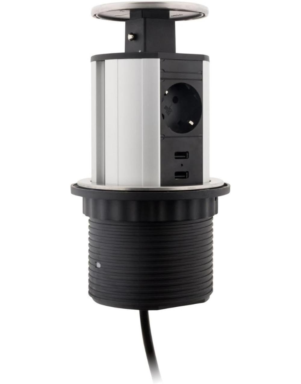 ΧΩΝΕΥΤΟ ΠΟΛΥΠΡΙΖΟ POP-UP ΓΙΑ ΕΠΙΠΛΑ ΓΡΑΦΕΙΟΥ/ΚΟΥΖΙΝΑΣ ΜΕ 3 ΣΟΥΚΟ 2 USB + 1,5M ΚΑΛΩΔΙΟ ΔΙΑΜ. Φ100 OTIO – 2-HB278427