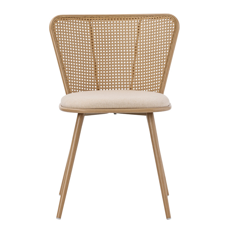 Καρέκλα Daniele pakoworld φυσικό pe rattan-μπεζ ύφασμα-φυσικό μέταλλο 46.5×57.5×77.5εκ – 058-000067