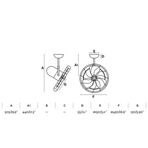 Είναι πολύ σημαντικό να επιλέξετε τη σωστή διάσταση του ανεμιστήρα λαμβάνοντας υπόψη το μέγεθος του δωματίου. Αυτός ο ανεμιστήρας μεγέθους “S” είναι ιδανικός για δωμάτια μικρότερα από 13 m² καθώς έχει διάμετρο μικρότερη από Ø106 cm.