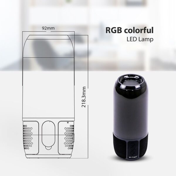 Φορητό Ασύρματο Ηχείο- Φωτιστικό Γραφείου Bluetooth με Μπαταρία και RGB LED Φωτισμό 6W V-TAC Μαύρο- 8570