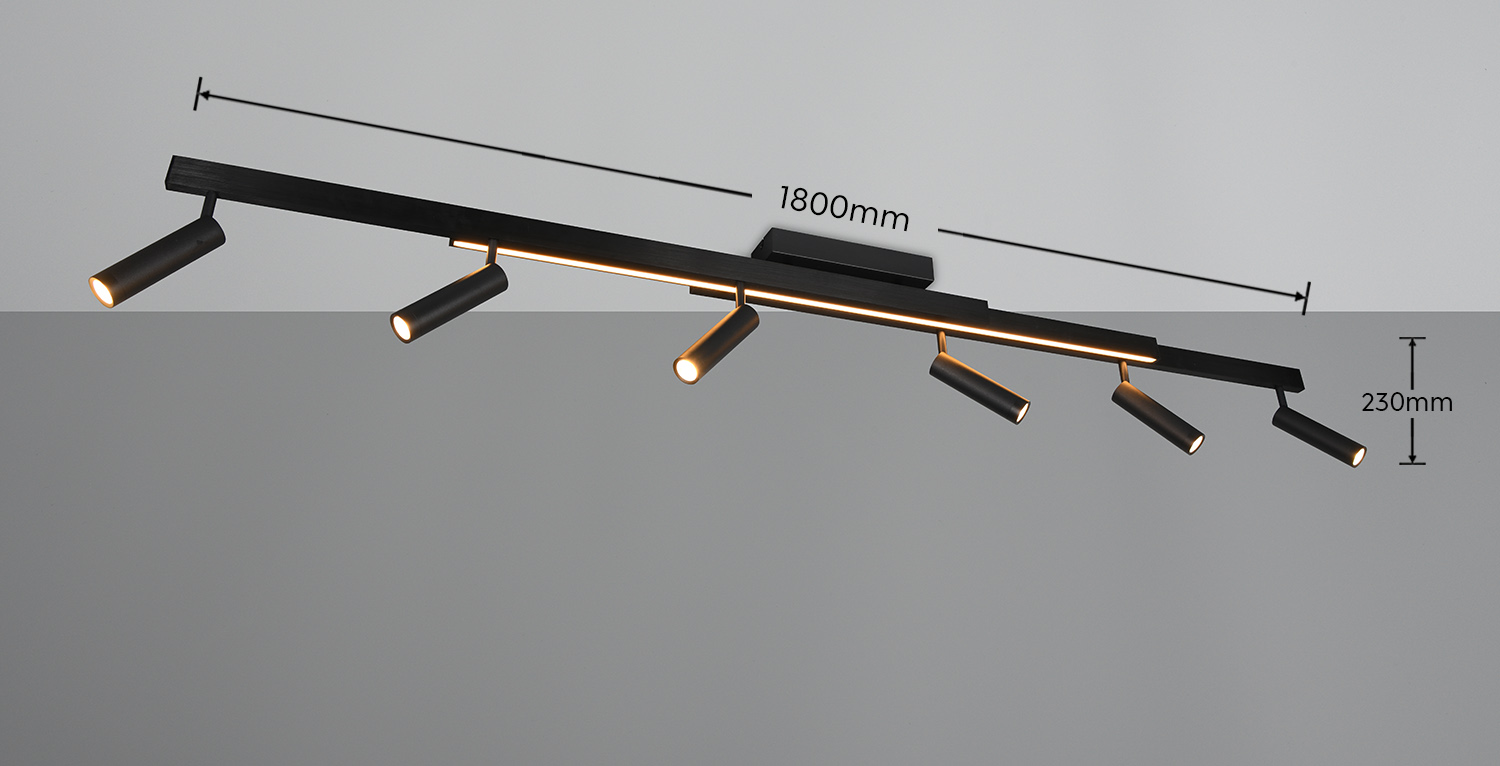 Ευέλικτο φωτισμό σε κομψό σχεδιασμό – Το φωτιστικό οροφής ZENO εντυπωσιάζει με τρία παράλληλα, επιμήκη στοιχεία που μπορούν εύκολα να αποσπαστούν για να προσαρμόσετε το φως στις ανάγκες σας και στο δωμάτιο. Επιπλέον, έξι κινητοί προβολείς προσφέρουν περαιτέρω επιλογές για στοχευμένο σχεδιασμό φωτισμού στον χώρο σας. Το παρεχόμενο τηλεχειριστήριο σάς επιτρέπει να ελέγχετε εύκολα το χρώμα και τη φωτεινότητα του φωτός από απόσταση. Το μαύρο ματ μέταλλο δίνει στο φως μια κομψή και μοντέρνα εμφάνιση. Το φωτιστικό διαθέτει επίσης σύγχρονη τεχνολογία LED, η οποία χαρακτηρίζεται από υψηλή ποιότητα φωτισμού και ενεργειακή απόδοση. Σε σύγκριση με τις συμβατικές πηγές φωτός αλογόνου, μπορεί να εξοικονομηθεί έως και 80% του ενεργειακού κόστους. Οι πηγές φωτός LED έχουν επίσης μεγάλη διάρκεια ζωής, παράγουν λιγότερη θερμότητα και προστατεύουν το περιβάλλον.