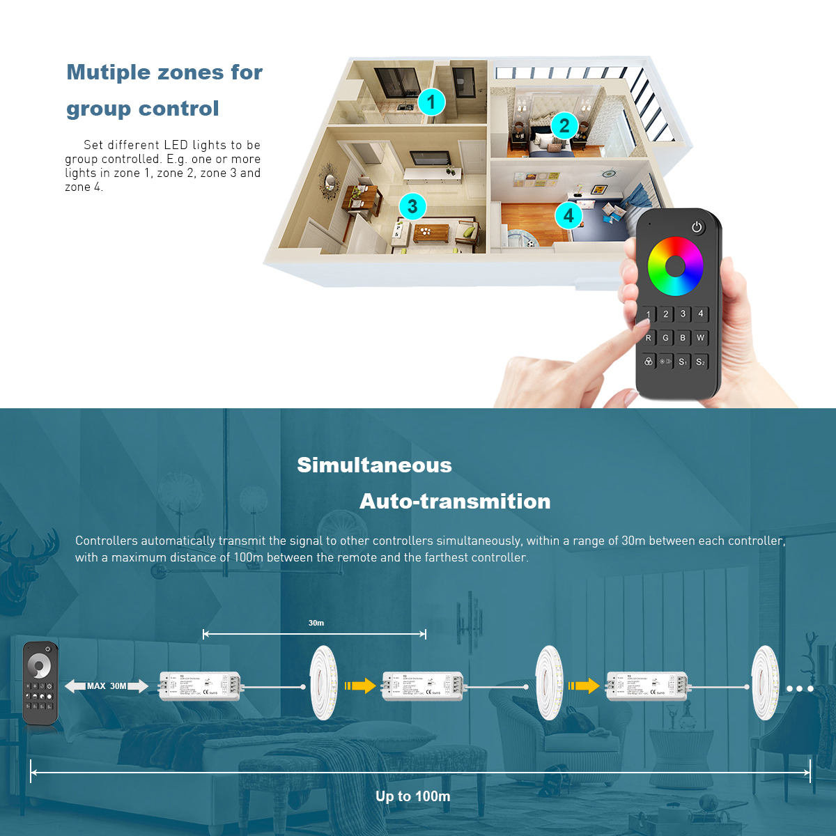 LED Controller Dimmer simplicity RF‐ push button 15A 12‐48Vdc CUBALUX CL13-0930