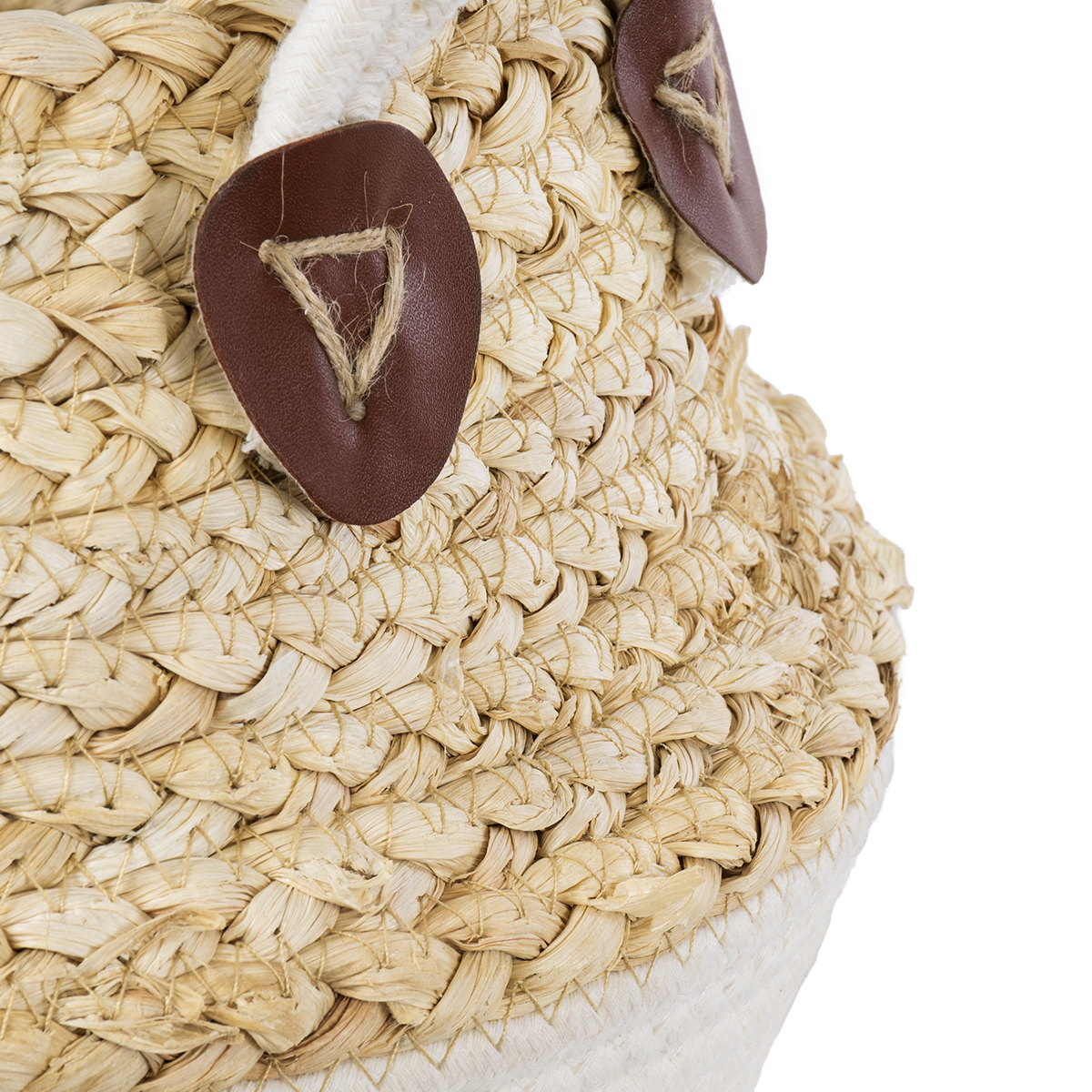 GloboStar® Artificial Garden SKOPELOS 20298 Διακοσμητικό Πλεκτό Καλάθι - Κασπώ Γλάστρα - Flower Pot Μπεζ με Καφέ Φ26cm x Υ55cm