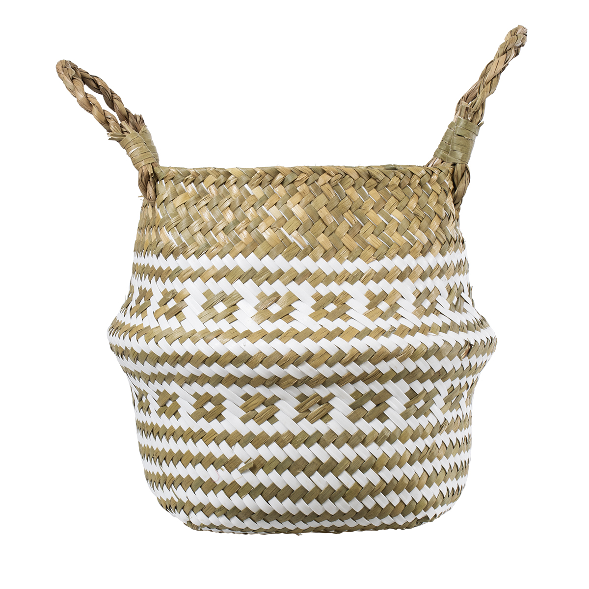 GloboStar® Artificial Garden ITHAKI 20325 Διακοσμητικό Πλεκτό Καλάθι - Κασπώ Γλάστρα - Flower Pot Μπεζ με Λευκό Φ30 x Υ30cm
