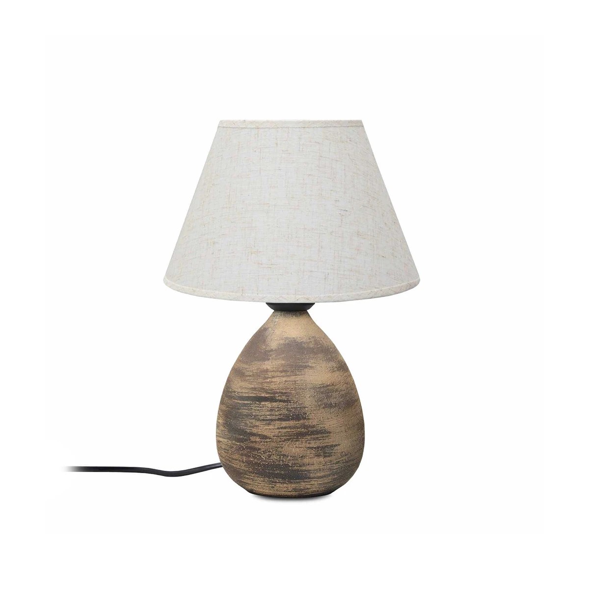 GloboStar® LISBON 204-0150 Vintage Eπιτραπέζιο Φωτιστικό Μονόφωτο 1 x E27 IP20 Καφέ Κεραμικό με Μπεζ Ύφασμα – Μ22 x Π22 x Υ30cm