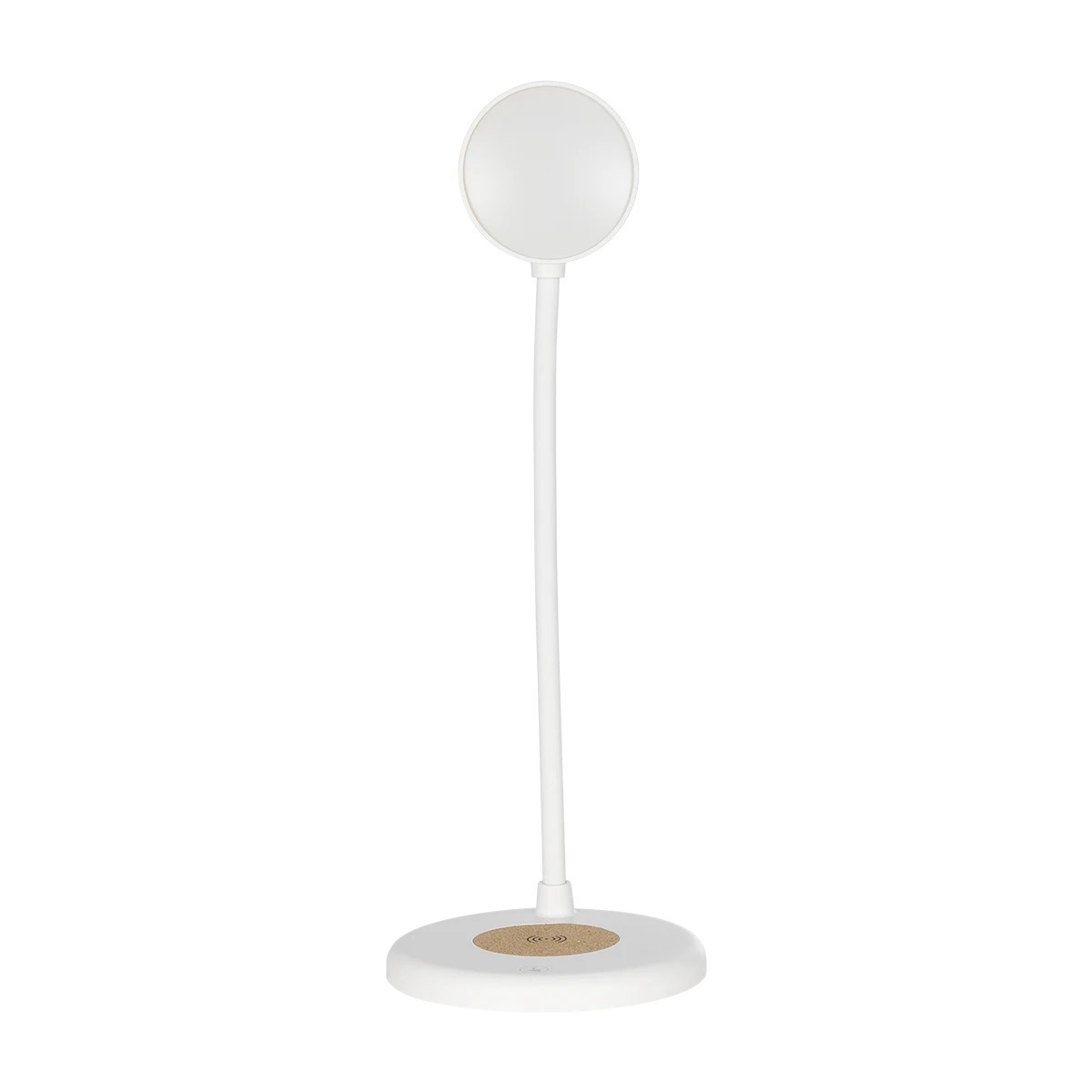 GLOBOSTAR® LUCORA 76555 Μοντέρνο Επιτραπέζιο Φωτιστικό Γραφείου με Ασύρματη Φόρτιση 10W 2A & 4W Bluetooth Ηχείο LED 3W 300lm 120° DC 5V με USB-C IP20 Ρυθμιζόμενο Λευκό CCT με Αφή 2700K/4500K/6000K Dimmable – Sanan SMD Chip – Λευκό – Μ12 x Π12 x Υ32cm – 2 Χρόνια Εγγύηση