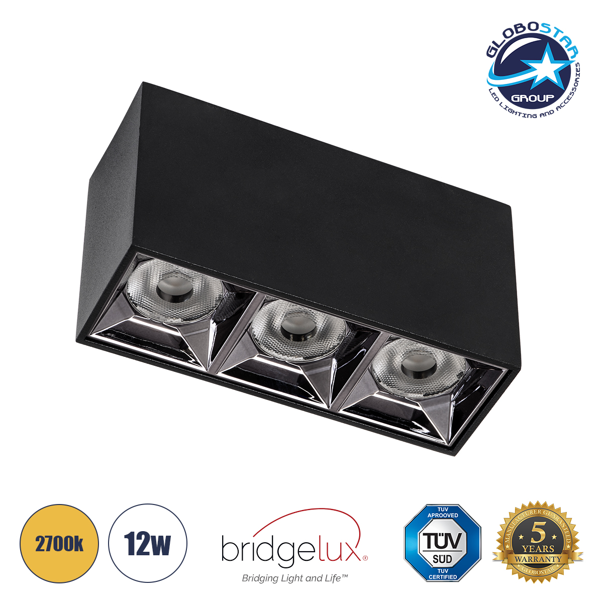 GloboStar® LUMINAR SUPERIOR 60325 Επιφανειακό LED Spot Downlight TrimLess 12W 1620lm 36° AC 220-240V IP20 Μ11.8 x Π4.2 x Υ6.6cm – Μαύρο με Κάτοπτρο Χρωμίου – Θερμό Λευκό 2700K – Bridgelux High Lumen Chip Gen2 – TÜV Certified Driver – 5 Years Warranty