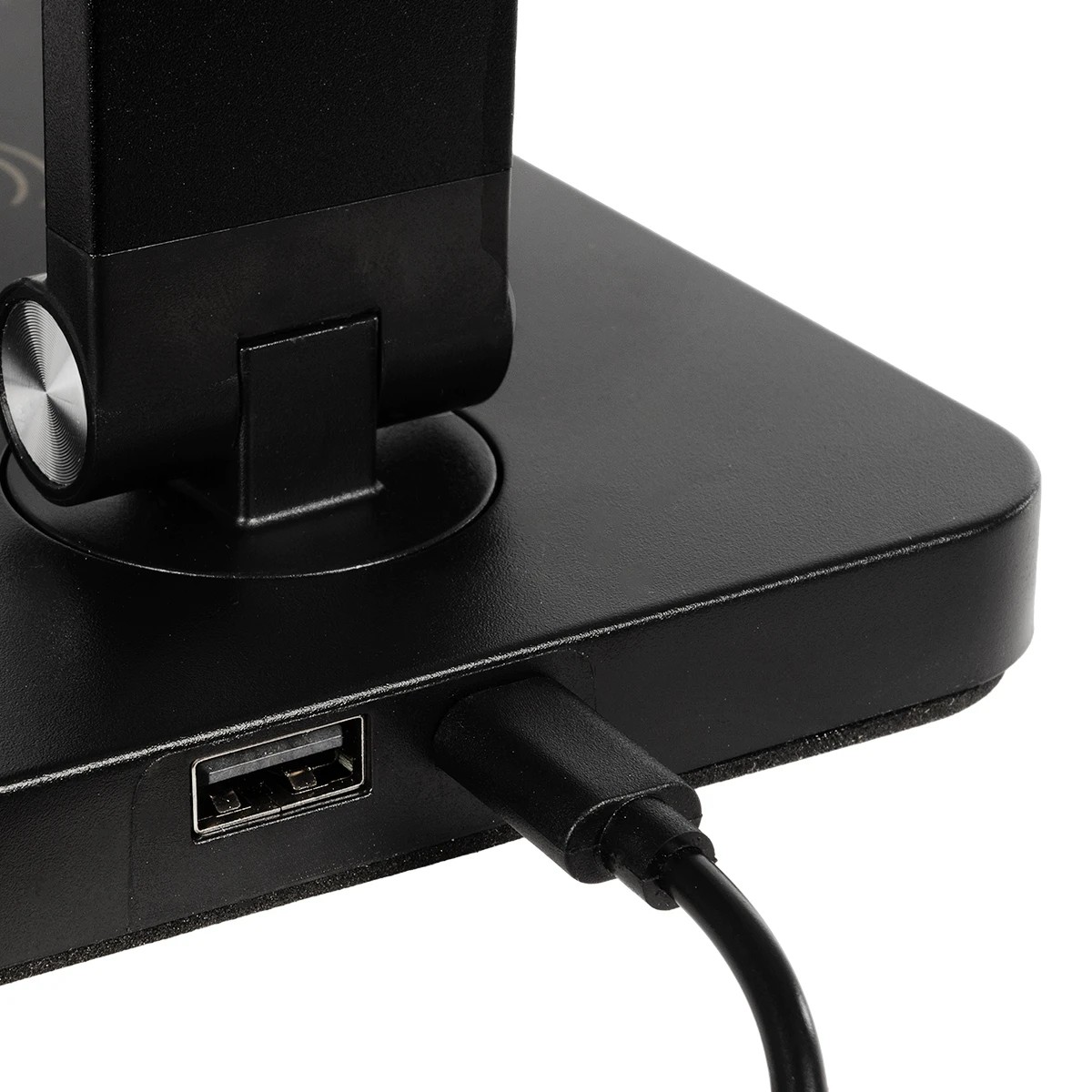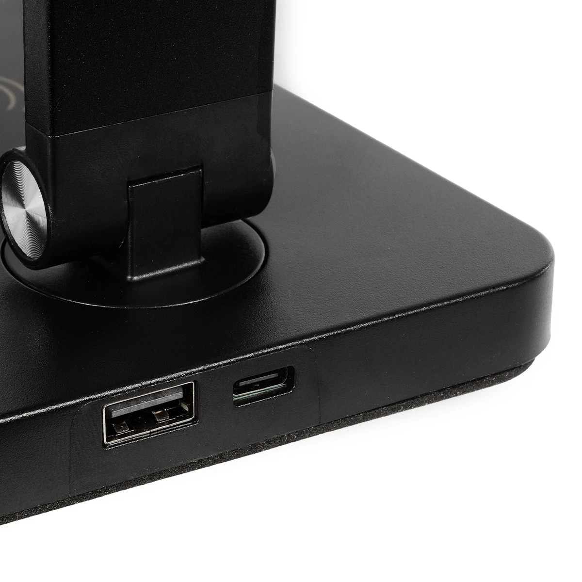 GLOBOSTAR® TEBLA 60482 Μοντέρνο Επιτραπέζιο Φωτιστικό Γραφείου με Ασύρματη Φόρτιση 5W 1A LED 5W 500lm 120° AC 220-240V IP20 Ρυθμιζόμενο Λευκό CCT με Αφή 2700K/4500K/6000K Dimmable – Bridgelux SMD Chip – Μαύρο – Μ11 x Π31 x Υ52cm – 2 Χρόνια Εγγύηση