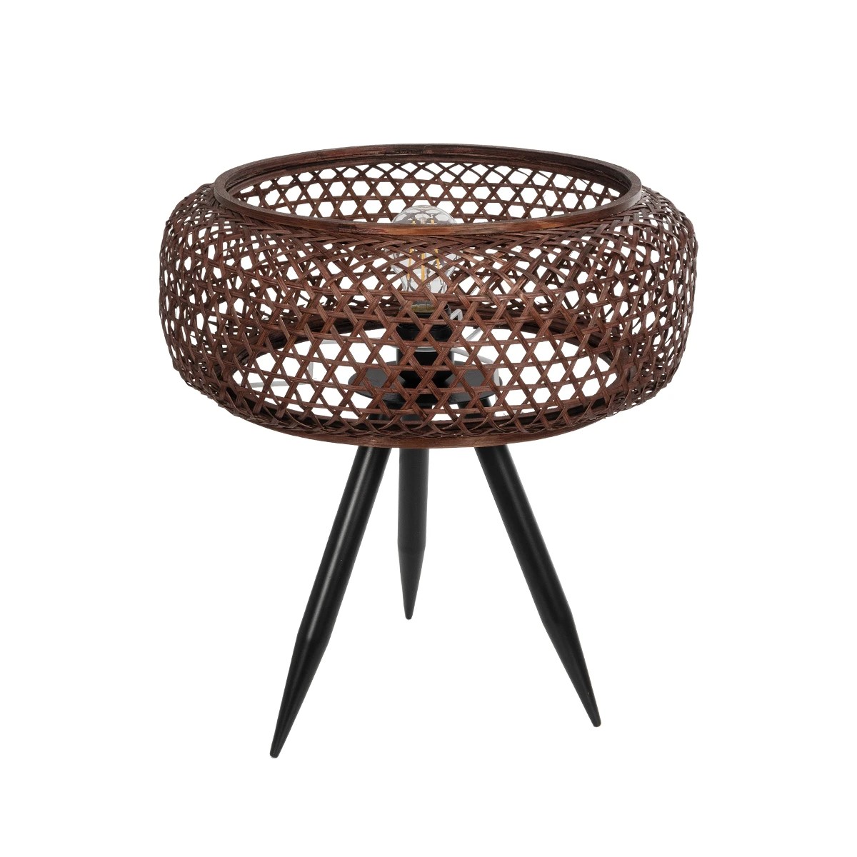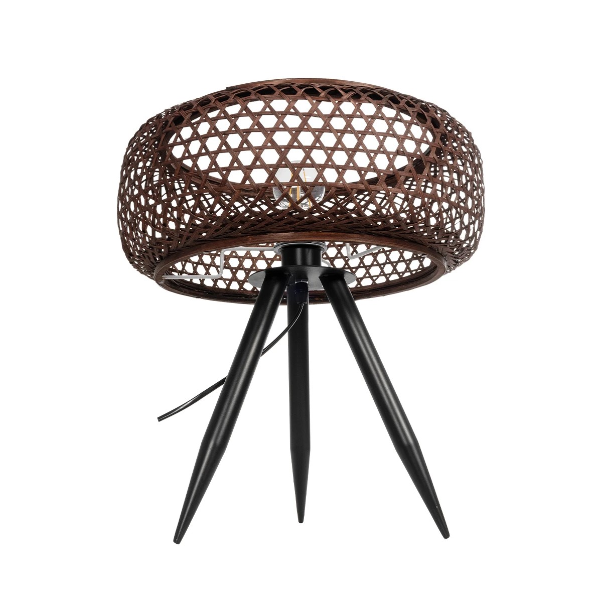 GloboStar® ZORION 999-0040 Vintage Επιτραπέζιο Φωτιστικό Πορτατίφ Μονόφωτο 1 x E27 IP20 Καφέ Ξύλο με Μαύρο Μέταλλο – Μ40 x Π40 x Υ43.5cm
