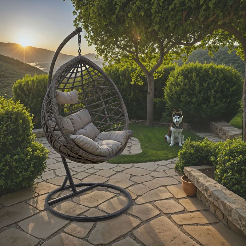 Κούνια Hudson pakoworld κρεμαστή μέταλλο-pp-μαξιλάρι γκρι 109x119x195εκ – 135-000007