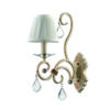 Πρόκειται για ένα μπεζ μεταλλικό επιτοίχιο φωτιστικό με έναν λαμπτήρα και διακριτική ύπαρξη κρυστάλλων. Το μπεζ υφασμάτινο καπέλο που καλύπτει τον λαμπτήρα δίνει έναν απαλό φωτισμό στον χώρο.