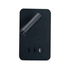 Πρόκειται για ένα μεταλλικό μαύρο επιτοίχιο φωτιστικό. Στο μπροστινό του μέρος υπάρχουν δύο διακριτικά διακοπτάκια. Το ένα αντιστοιχεί στο φως που υπάρχει στο μπροστινό μέρος και το άλλο στον διακριτικό περιμετρικό φωτισμό στο πίσω μέρος του. Και οι δύο φωτισμοί είναι led θερμής απόχρωσης. Αυτό που ενισχύει την ιδιαιτερότητά του είναι η θύρα usb που είναι ενσωματωμένη και δίνει τη δυνατότητα φόρτισης του κινητού τηλεφώνου!