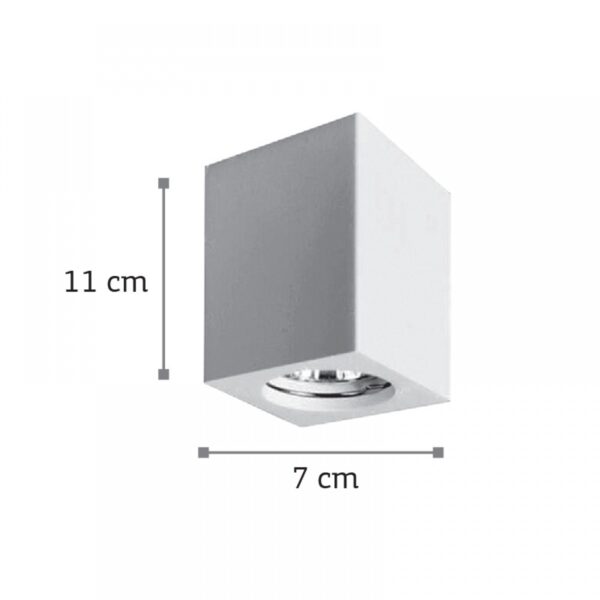 Πρόκειται για ένα φωτιστικό οροφής κατασκευασμένο από γύψο με τετράγωνη σχεδίαση. Τόσο το λευκό του χρώμα, όσο και οι μικρές του διαστάσεις το καθιστούν ιδανική επιλογή για συμπληρωματικό φωτισμό στο χώρο ή για να τονιστεί ένα συγκεκριμένο σημείο στο χώρο. Η γύψινη κατασκευή τού επιτρέπει τη βαφή του.