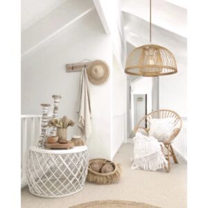 Ένα κρεμαστό φωτιστικό κατασκευασμένο από ρατάν κατάλληλο για ποικίλους εσωτερικούς χώρους. Αποτελεί την ιδανική επιλογή για όποιον επιθυμεί μια πιο χαλαρή διάθεση στον χώρο του. Η ανάρτηση προσαρμόζεται στο ύψος του κάθε χώρου.