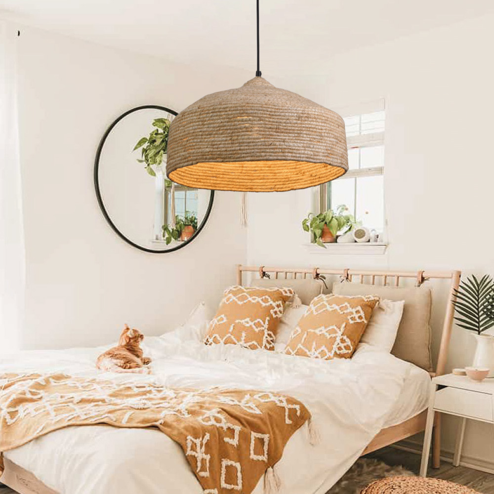 Πρόκειται για ένα κρεμαστό φωτιστικό με καπέλο από σχοινί .