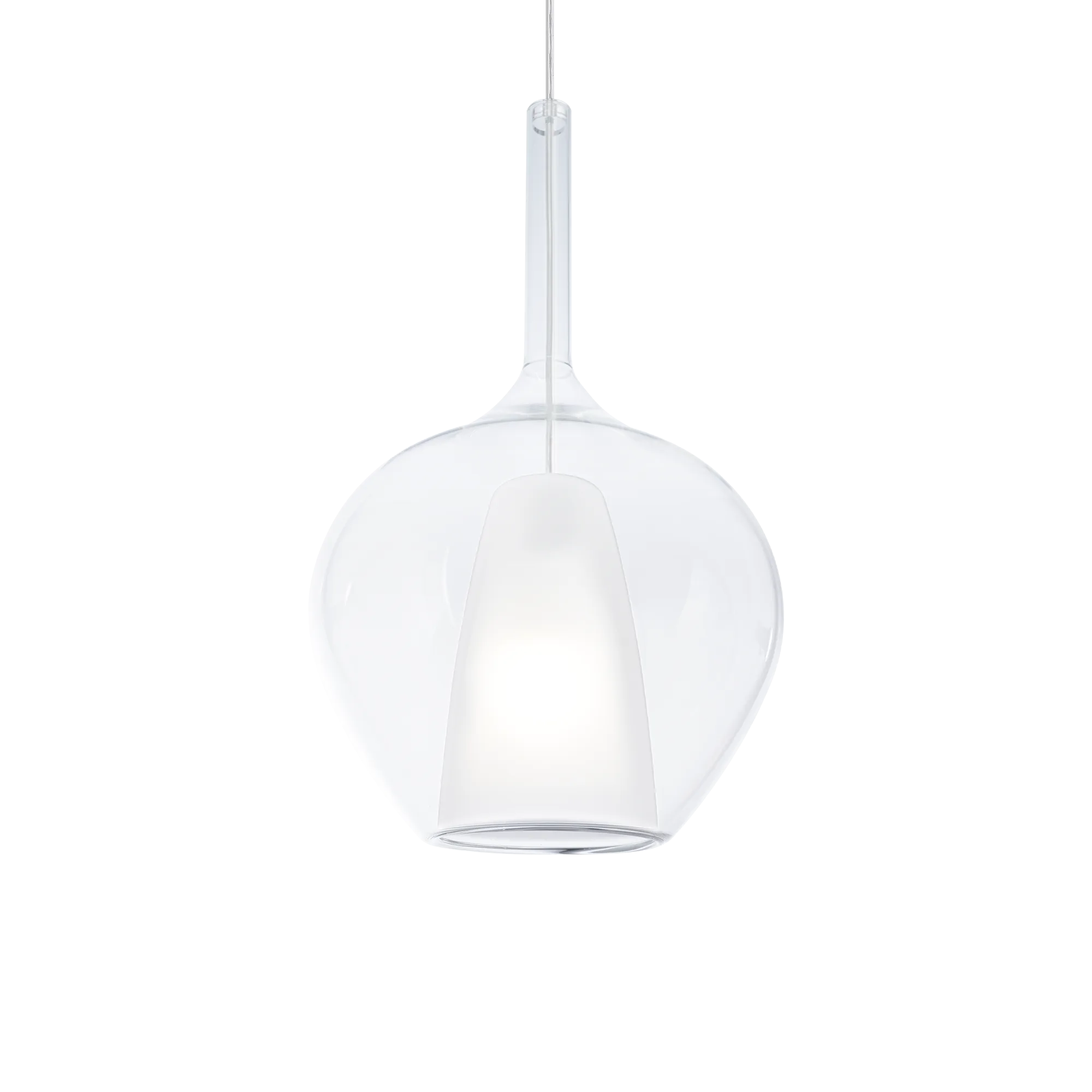 Το Ideal Lux Kalique SP1-1 d18 Transparent είναι ένα κομψό και minimal κρεμαστό φωτιστικό που ξεχωρίζει για την καθαρή αισθητική και την υψηλή ποιότητα κατασκευής του. Διαθέτει διπλό diffuser από blown borosilicate glass, όπου το εσωτερικό satin glass εξασφαλίζει απαλή και ομοιόμορφη διάχυση φωτός, ενώ το εξωτερικό Transparent finish αναδεικνύει τη φωτεινή πηγή και δημιουργεί ένα φωτεινό, καθαρό αποτέλεσμα στον χώρο.
