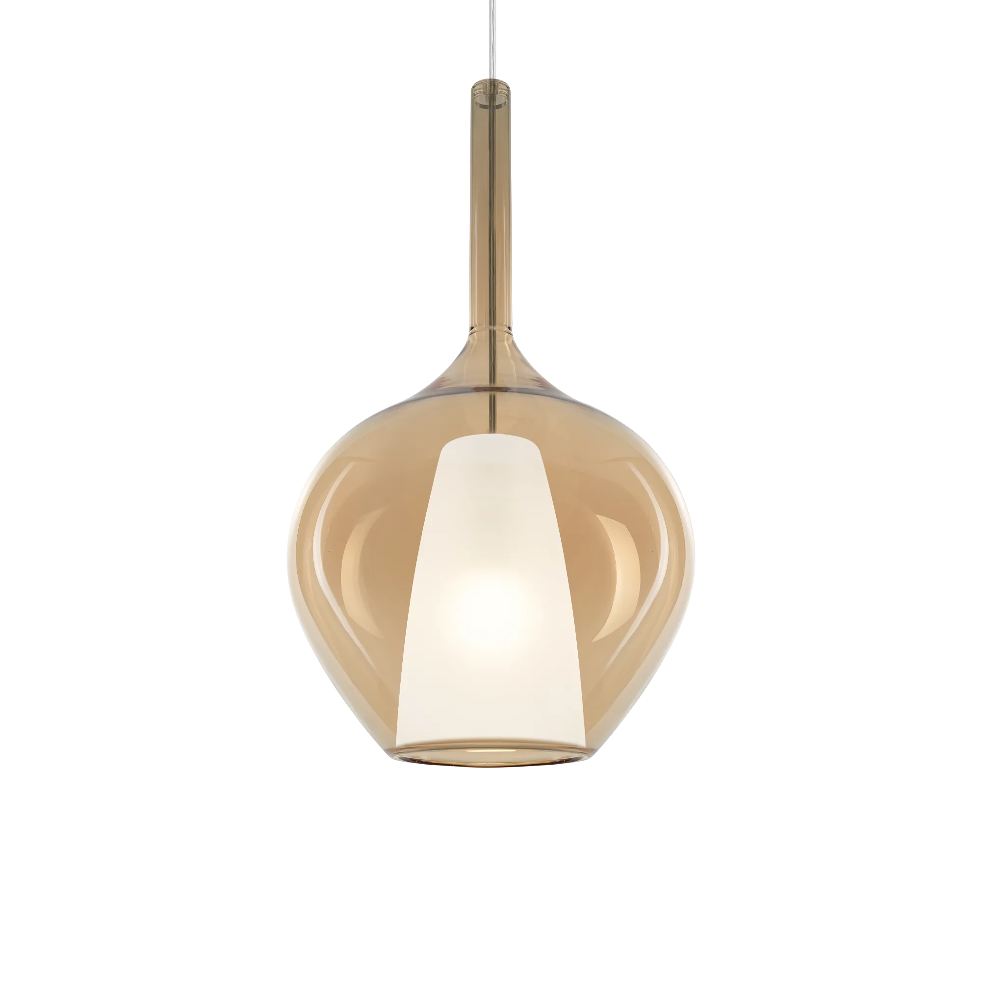 💎 Υλικά: Διπλό blown borosilicate glass diffuser με satin interior & Amber exterior για warm και κομψό φωτιστικό αποτέλεσμα.