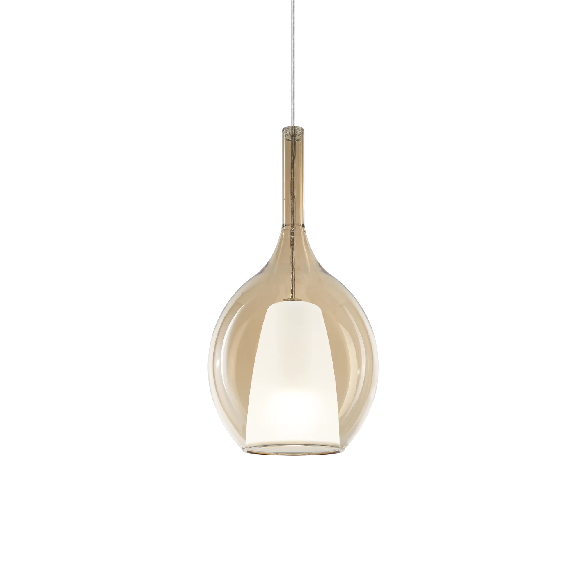 Το Ideal Lux Kalique SP1-2 d18 Amber είναι ένα κομψό και σύγχρονο κρεμαστό φωτιστικό που συνδυάζει minimal αισθητική με υψηλής ποιότητας υλικά. Ξεχωρίζει για τον διπλό diffuser από blown borosilicate glass, όπου το εσωτερικό satin glass απαλύνει τη φωτεινότητα, ενώ το εξωτερικό Amber finish δημιουργεί μια θερμή, honey-toned απόχρωση που προσφέρει cozy και φιλόξενη ατμόσφαιρα στον χώρο.