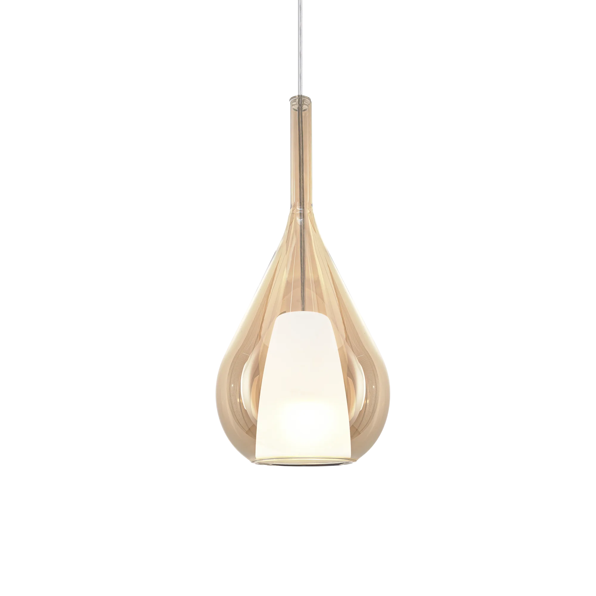 Το Ideal Lux Kalique SP1 D18 Amber αποτελεί μια κομψή και λειτουργική επιλογή φωτισμού LED για εσωτερικούς χώρους που απαιτούν ατμοσφαιρικό, ζεστό φωτισμό με μοντέρνα αισθητική. Το ιδιαίτερο χαρακτηριστικό αυτού του κρεμαστού φωτιστικού είναι το διπλό borosilicate γυαλί: το εσωτερικό satin diffuser απαλύνει το φως, ενώ το εξωτερικό amber γυαλί δημιουργεί μια ζεστή και φιλόξενη διάχυση φωτισμού.
