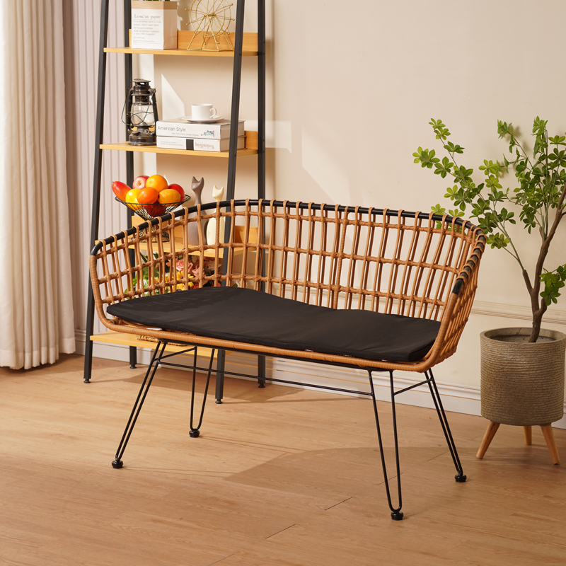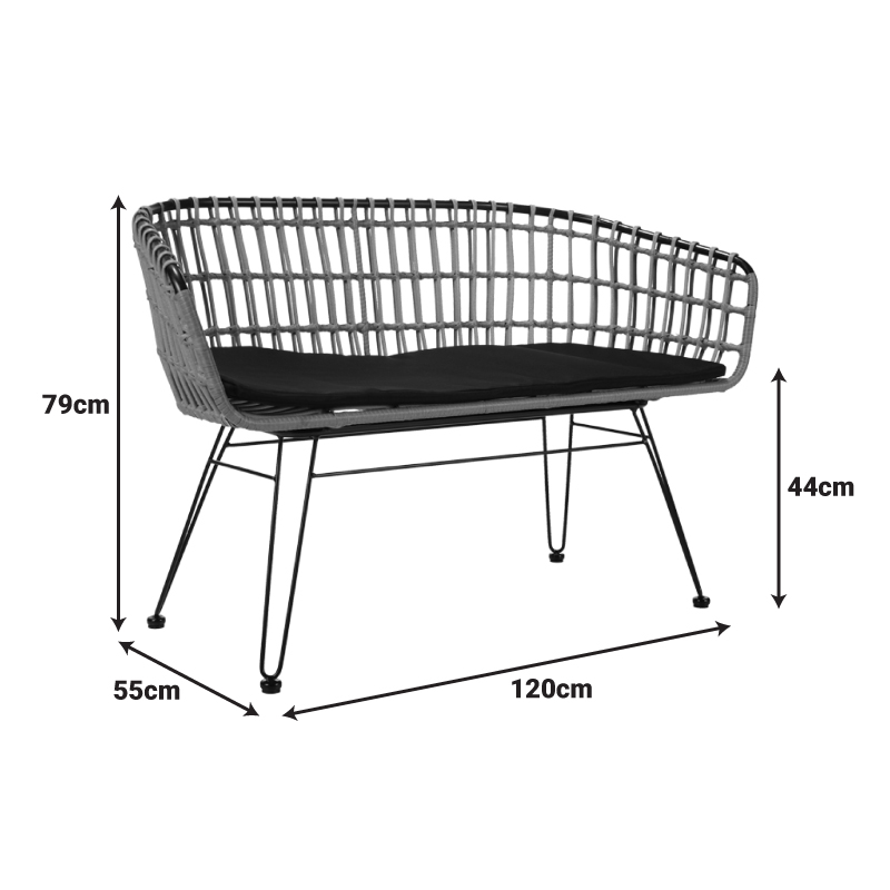 Καναπές 2θέσιος Naoki pakoworld μέταλλο μαύρο-pe φυσικό 120x55x79εκ – 140-000007