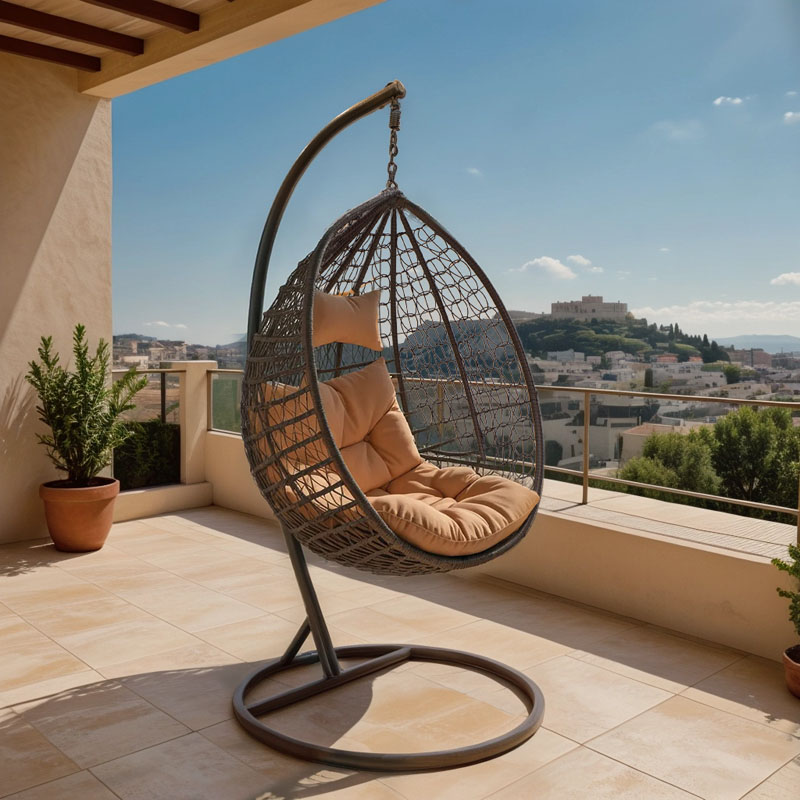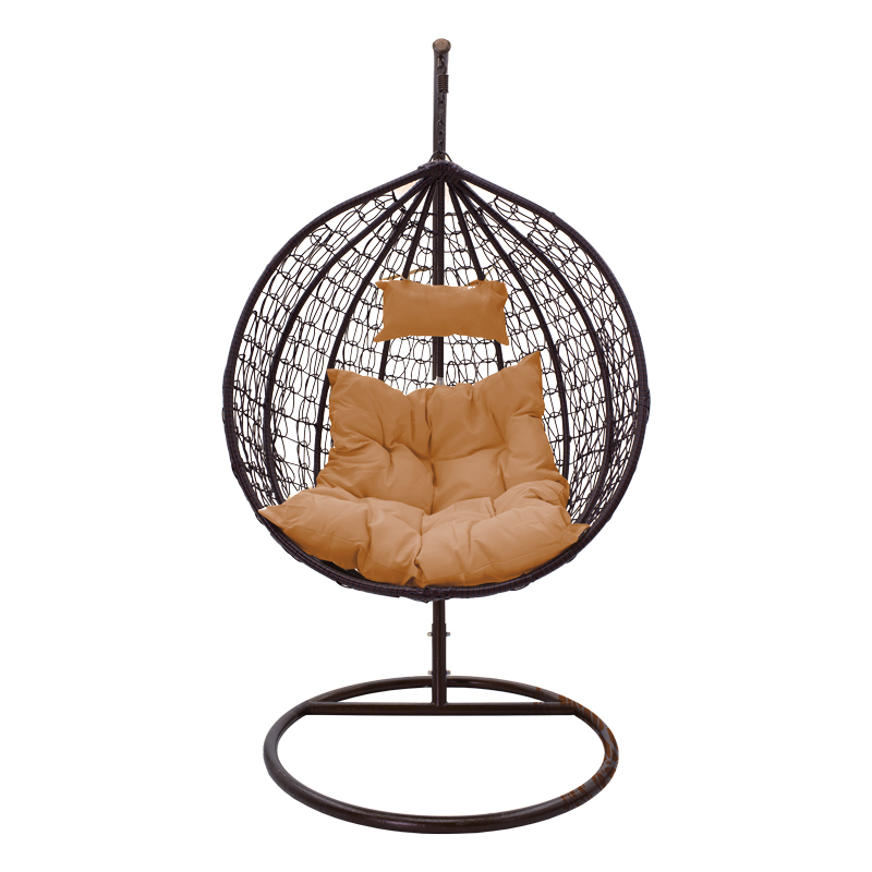 Κούνια Zafer pakoworld κρεμαστή μέταλλο-pp καφέ-μαξιλάρι καφέ 106x103x200εκ – 135-000023