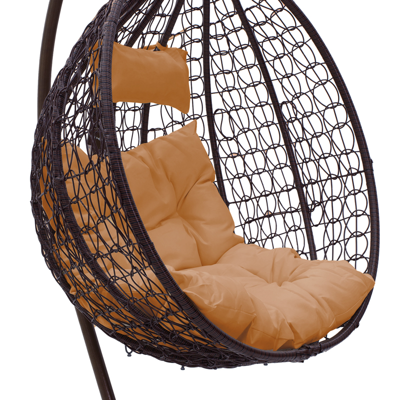Κούνια Zafer pakoworld κρεμαστή μέταλλο-pp καφέ-μαξιλάρι καφέ 106x103x200εκ - 135-000023