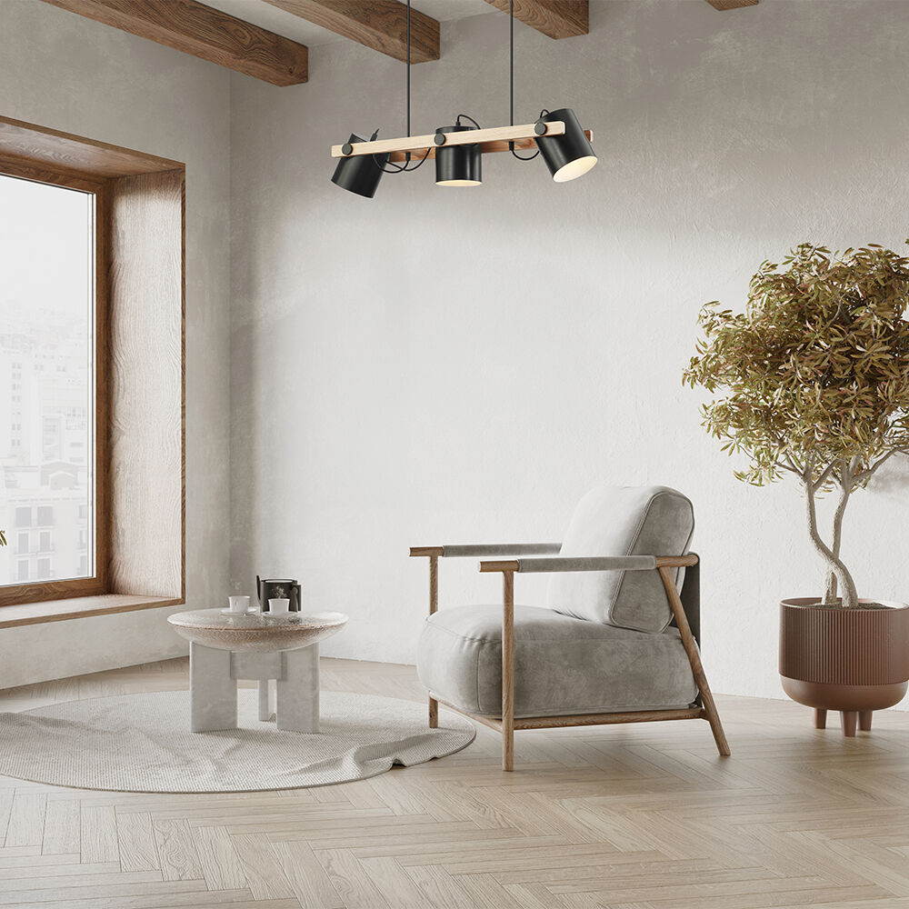 Κρεμαστό φωτιστικό 3 x E27 μαύρο/ξύλο – BV02-00011