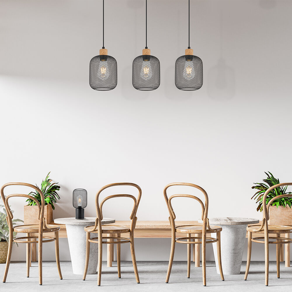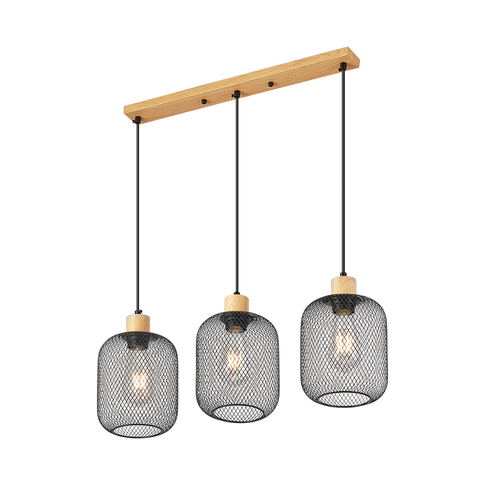 Κρεμαστό φωτιστικό 3 x E27 μαύρο/ξύλο – BV03-00015