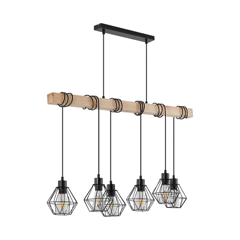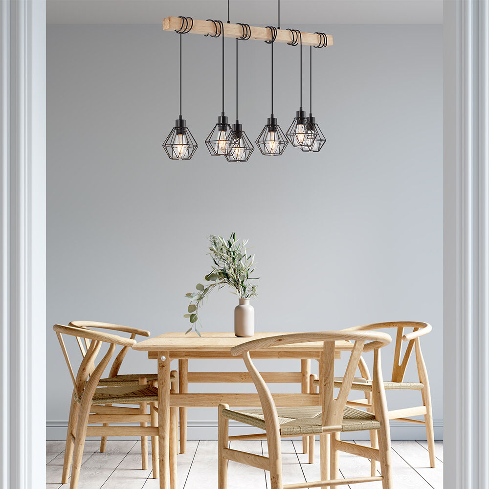 Κρεμαστό φωτιστικό 6 x E27 μαύρο/ξύλο – BV02-00021