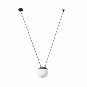 Γκρι μενταγιόν σχεδιασμένο από την Nahtrang με μεταλλικό σκελετό και διάχυτο γυαλιού opal. Το υλικό και το φως που ρέει μέσω του διαχύτη παρέχουν ζεστασιά και άνεση στο σπίτι σας. Αυτό το μενταγιόν σχεδίασης είναι ευέλικτο και προσαρμόσιμο, χάρη στο εξάρτημα αγκίστρου, μπορείτε να εγκαταστήσετε το φως όπου το χρειάζεστε. Για τις δυνατότητές του είναι ιδανικό για το φωτισμό του σπιτιού.
