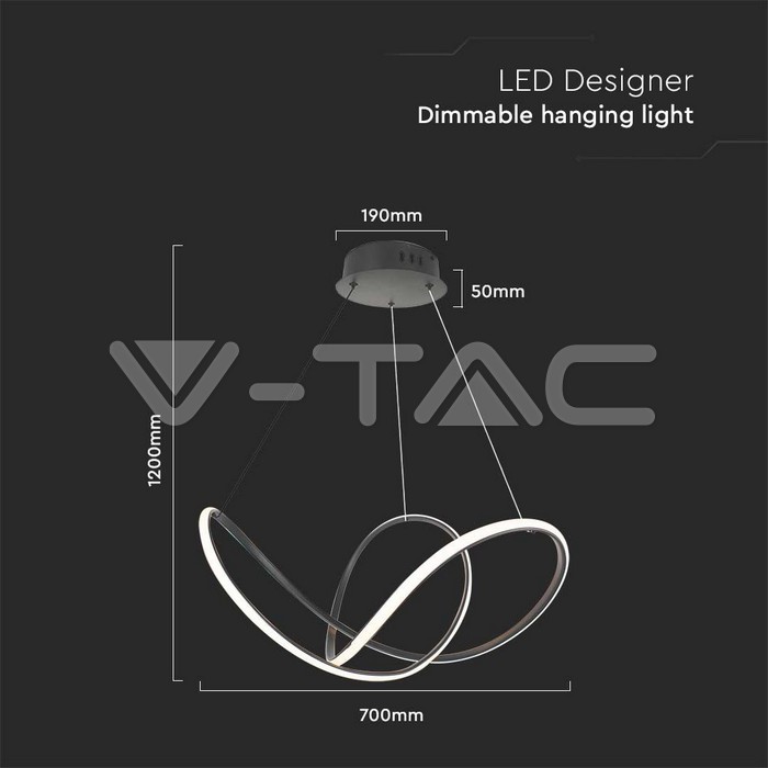 Κρεμαστό φωτιστικό οροφής LED 49W 3000K Mαύρο Χρώματος Dimmable V-TAC – 15340