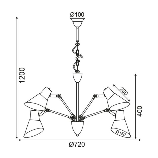 Κρεμαστό Φωτιστικό Οροφής με Ρυθμιζόμενες Κεφαλές 5xE27 Ø720 Μεταλλικό Μαύρο-Λευκό ACA – TNK854575PB