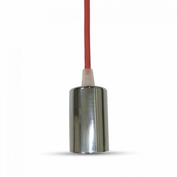 Κρεμαστό Φωτιστικό Οροφής Μεταλλικό Μονόφωτο E27 Χρώμιο με Κόκκινο Καλώδιο V-TAC 3791