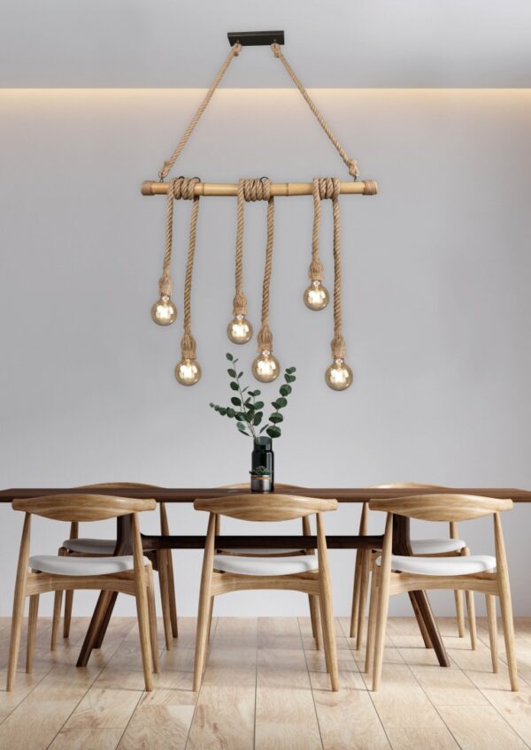Κρεμαστό Φωτιστικό Reality 6xE27 Καφέ Bamboo R30130626