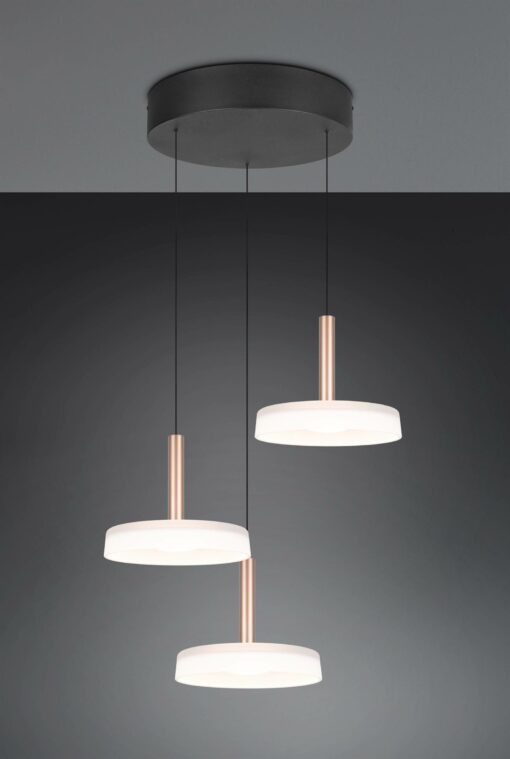 Κρεμαστό Φωτιστικό Ροζέτα με 3 Σποτ Καφέ+Λευκό Γυαλί CELESTE LED 22.5W 2250lm Step Dimmable 3000Κ Trio Lighting –