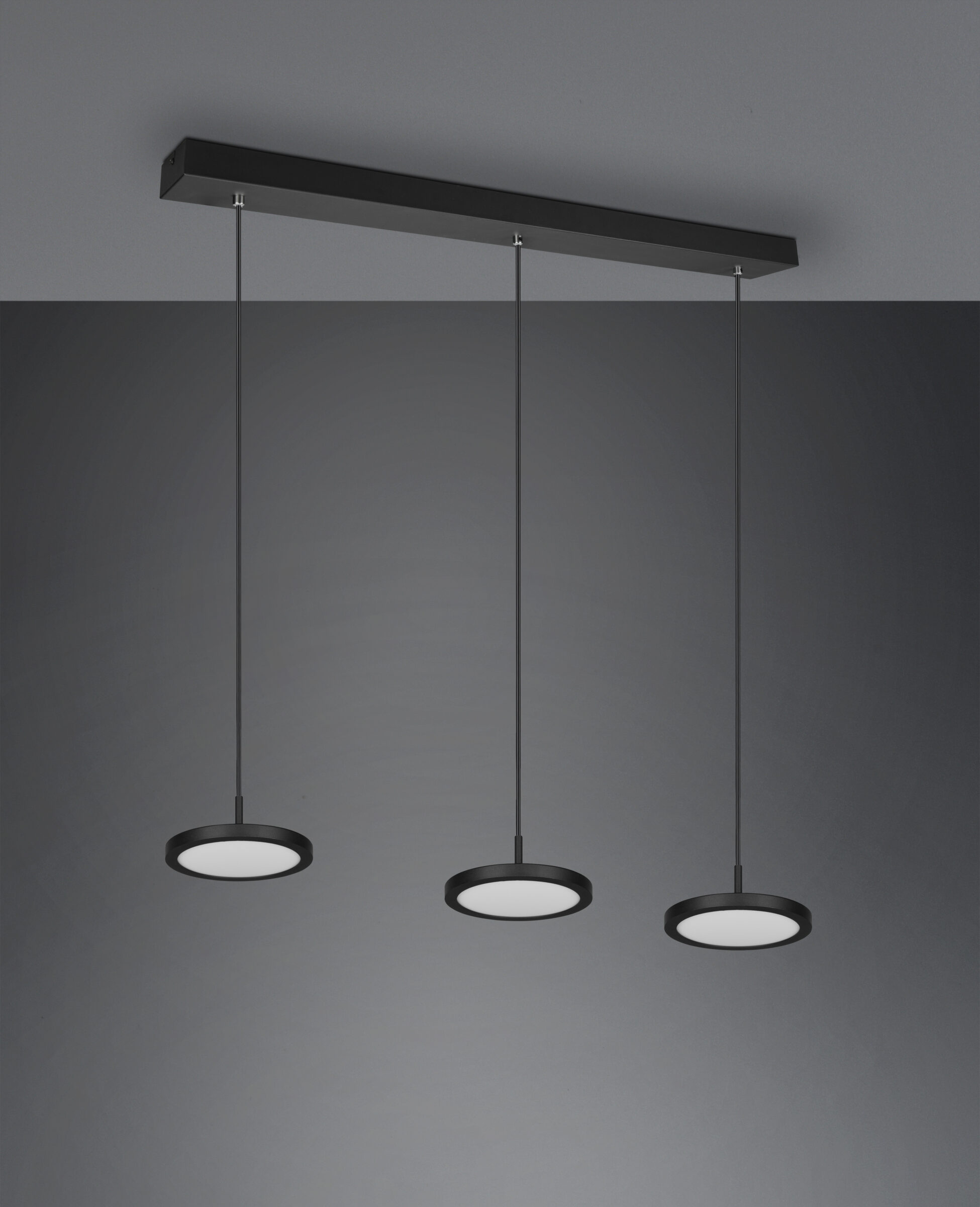 Κρεμαστό Φωτιστικό Trio Lighting TRAY 3x SMD, 10W · 3600lm, 3000K Μαύρο Ματ Μεταλλικό – 340910332
