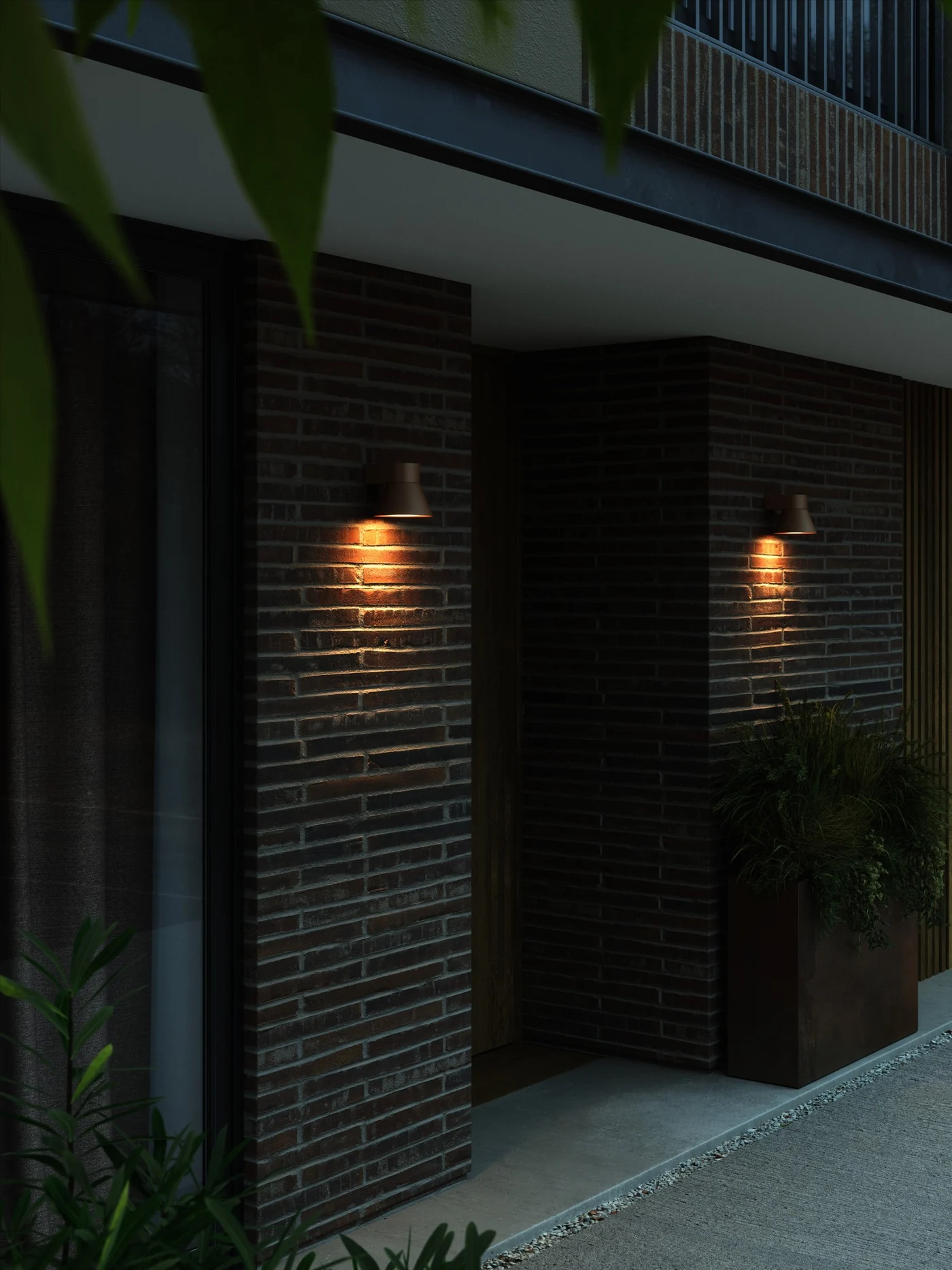 Το Nordlux Kyklop Cone 2318071009 είναι ένα κομψό φωτιστικό τοίχου εξωτερικού χώρου που συνδυάζει σκανδιναβικό design με λειτουργικό αρχιτεκτονικό φωτισμό. Σχεδιασμένο από το δανέζικο design studio Says Who, διαθέτει κωνικό καπέλο που δημιουργεί διακοσμητικό φωτισμό προς τα κάτω, αναδεικνύοντας την πρόσοψη του κτιρίου ή τους εξωτερικούς τοίχους με κομψό και διακριτικό τρόπο.