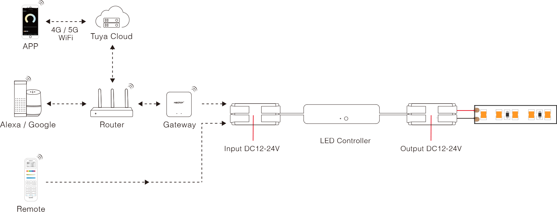 Όταν χρησιμοποιείται σε συνδυασμό με gateway 2.4 GHz, μπορείς να ενσωματώσεις τον controller σε smart‑home οικοσυστήματα, να τον ελέγχεις από το κινητό σου ή με φωνητικές εντολές μέσω Alexa ή Google Assistant — ιδανικό για σύγχρονα έξυπνα σπίτια.