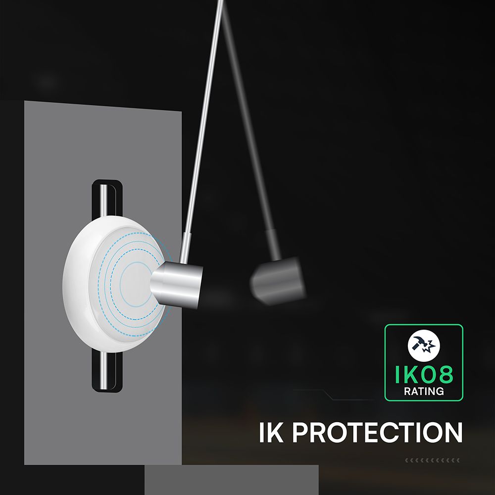 Με IP65 ανθεκτικότητα σε νερό και σκόνη, το φωτιστικό αυτό είναι ιδανικό για εξωτερικούς και ημι-εξωτερικούς χώρους, όπου οι συνθήκες είναι απαιτητικές, ενώ η ευρεία 110° γωνία δέσμης εξασφαλίζει ομοιόμορφη κάλυψη.