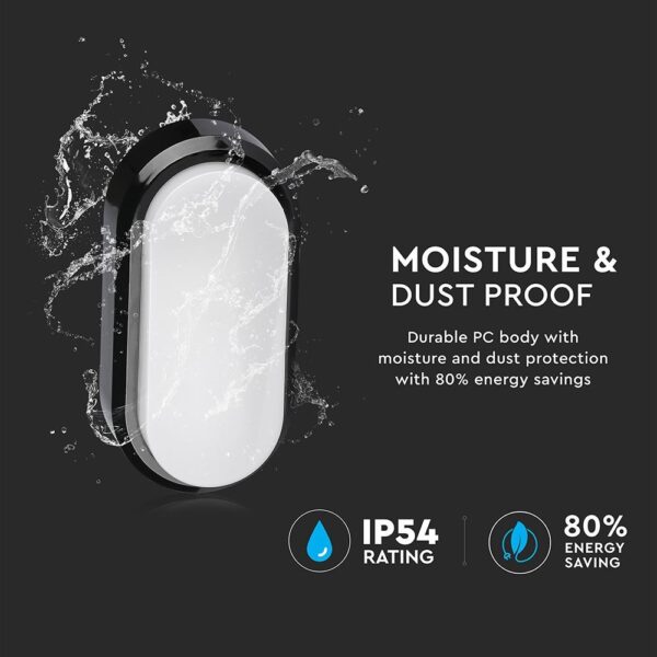 LED Φωτιστικό Απλίκα 8W V-TAC Οβάλ Μαύρο Αδιάβροχο IP54 Ψυχρό Λευκό 6400Κ – 1310