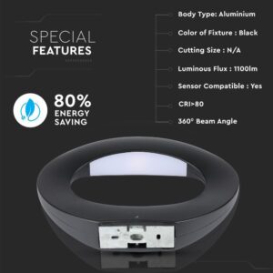 LED Φωτιστικό Τοίχου 10W V-TAC Μαύρο Φυσικό Λευκό 4000Κ – 8310